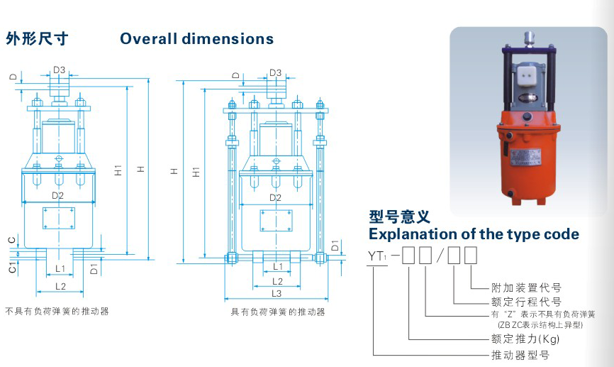 絕緣等級為B級,外殼防護等級為IP54;戶外雨雪侵蝕或有腐蝕性氣體介質(zhì)應(yīng)采用防腐型產(chǎn)品;根據(jù)要求可提供不同電壓,不同頻率等級的推動器。